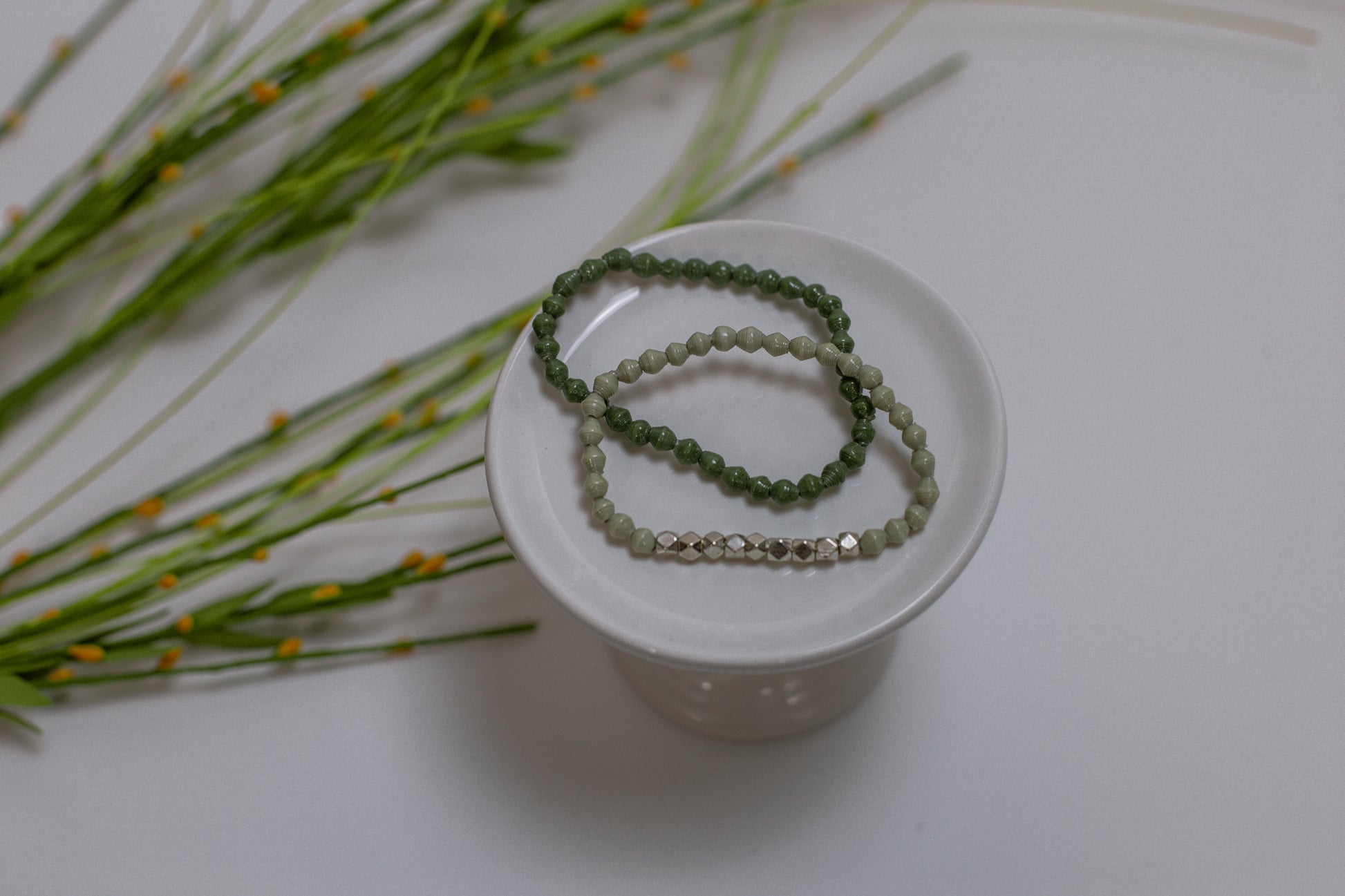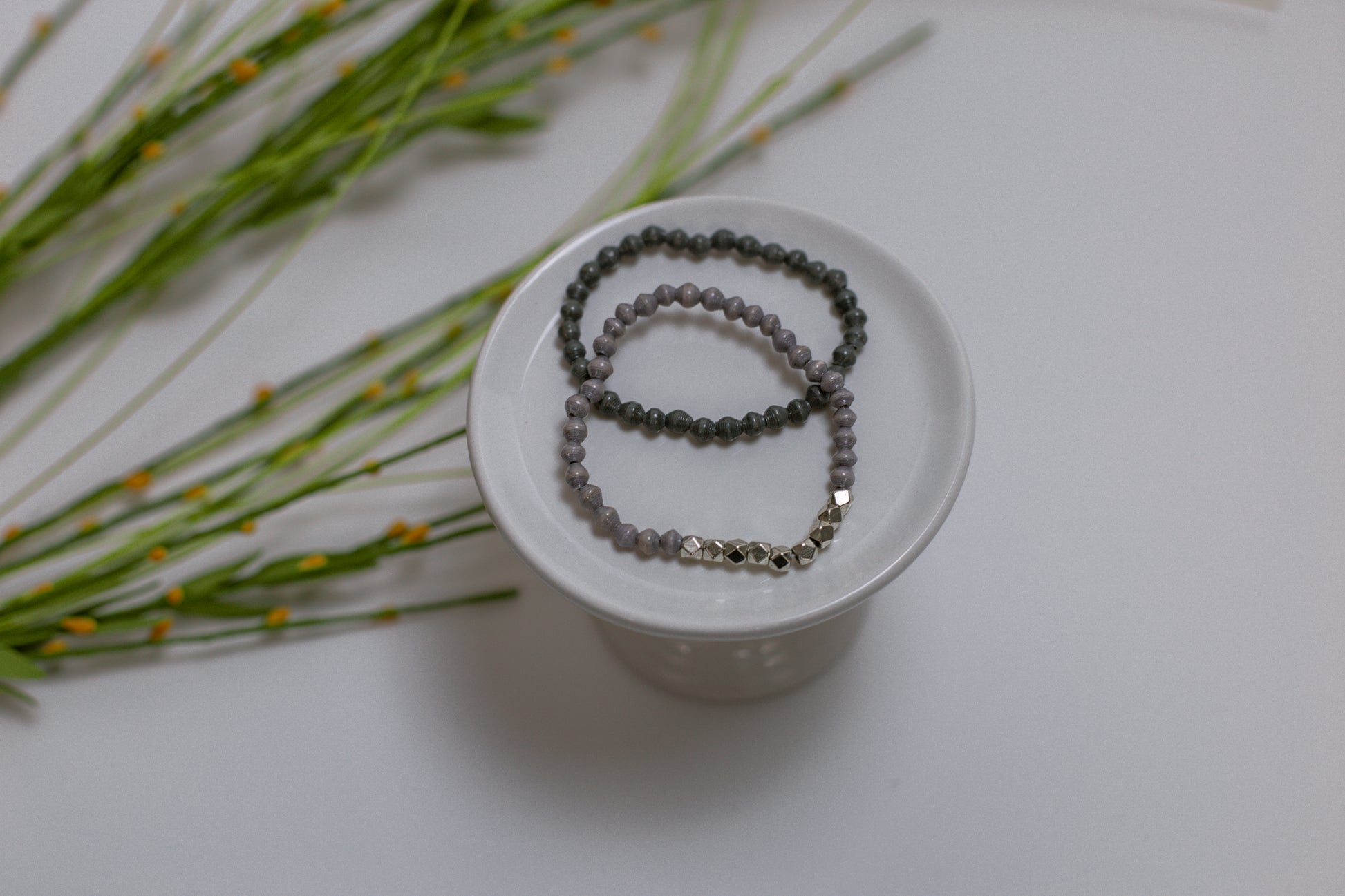 We encourage you to remove your jewelry before coming in contact with water, as all of our pieces are made with handmade paper beads.